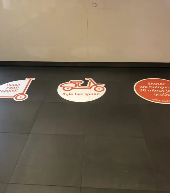 Nawigacja i naklejki podłogowe - trwałe oznaczenia stanowisk i stref, a także eksponowane na ścianach formy, wykonywane przez specjalistyczny ploter cyfrowy, gwarantujący precyzję wykonania decydują o estetyce wnętrza. Wykonujemy lampy, abażury, pylony ze spersonalizowaną grafiką o indywidualnych kształtach. System nawigacji podłogowej wykonany z ultra wytrzymałych materiałów z dodatkową warstwą specjalnego antypoślizgowego laminatu zapewnia czytelny przekaz przy zachowaniu norm bezpieczeństwa. Elementy ekspozycji na ścianach zapewniające szybkie i łatwe repozycjonowanie, wykonane na taflach z pleksi w dowolnym kształcie, z nadrukiem, grawerem mocowane są na magnesach.