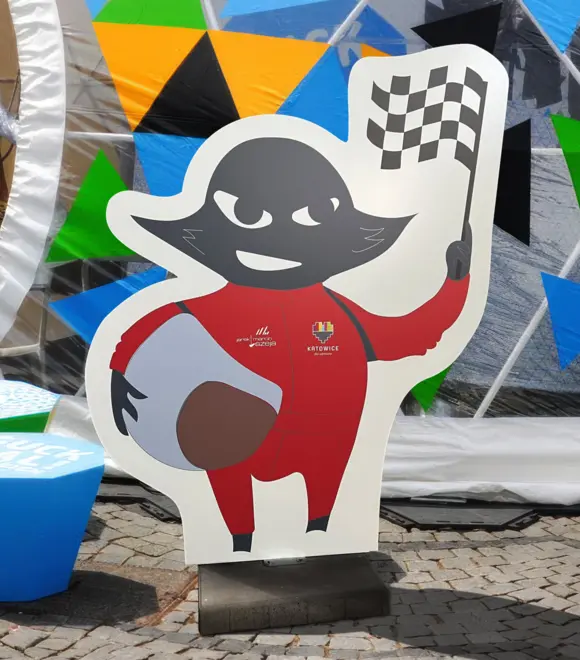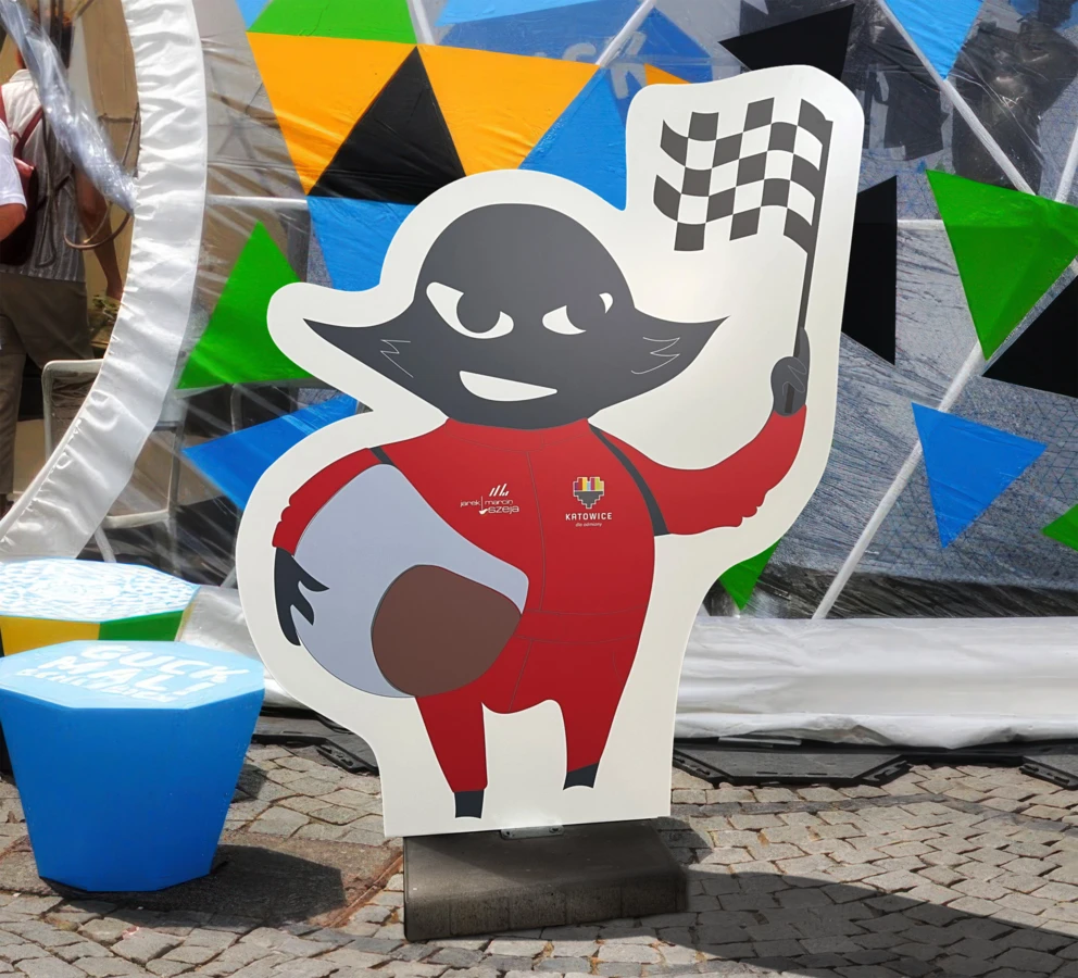 ◾ wykonany z trwałych materiałów: dwie plansze (postać) wycięte z blachy, wewnątrz polipropylen kanalikowy, nadruk UV na folii